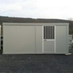 El bungalow SD2 estándar está equipado con una puerta semicristalada (104 x 220 cm, 90 cm de apertura) con barrotes y acristalamiento transparente simple, y una ventana corredera (104 x 110 cm) con barrotes y acristalamiento transparente simple. Puede solicitar la sustitución del acristalamiento transparente por vidrio esmerilado según sus necesidades.